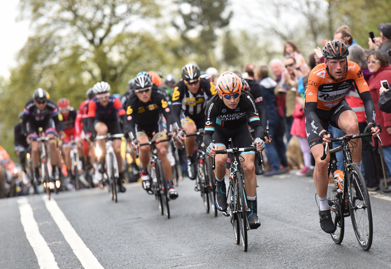Within the first five kilometres of the stage the break had already established, a very dangerous 16 man group quickly gaining 40 seconds advantage over the chasers before some teams realised they had missed this oppourtunity and started to chase. Madison Genesis were well represented by Mark McNally, Tom Scully and Tobyn Horton but despite their efforts the gap slowly decreased. Just as the break was about to be caught, eight riders including Mark McNally attacked from the front for what was to be the break of the day.
